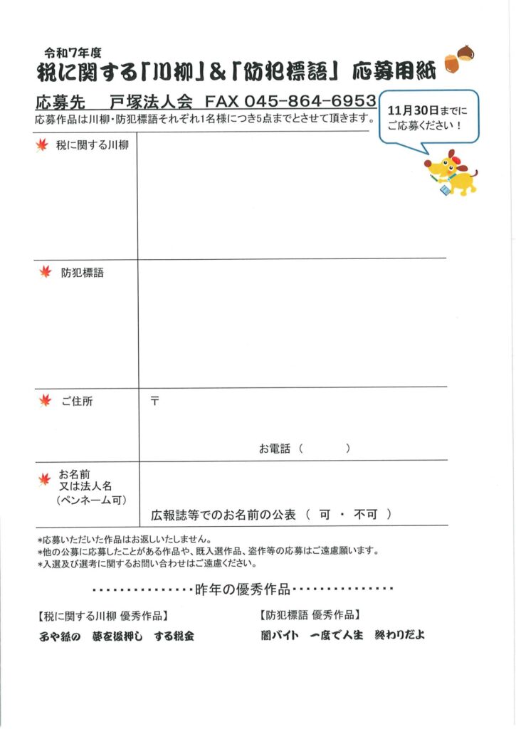 令和7年度税に関する川柳&防犯標語募集